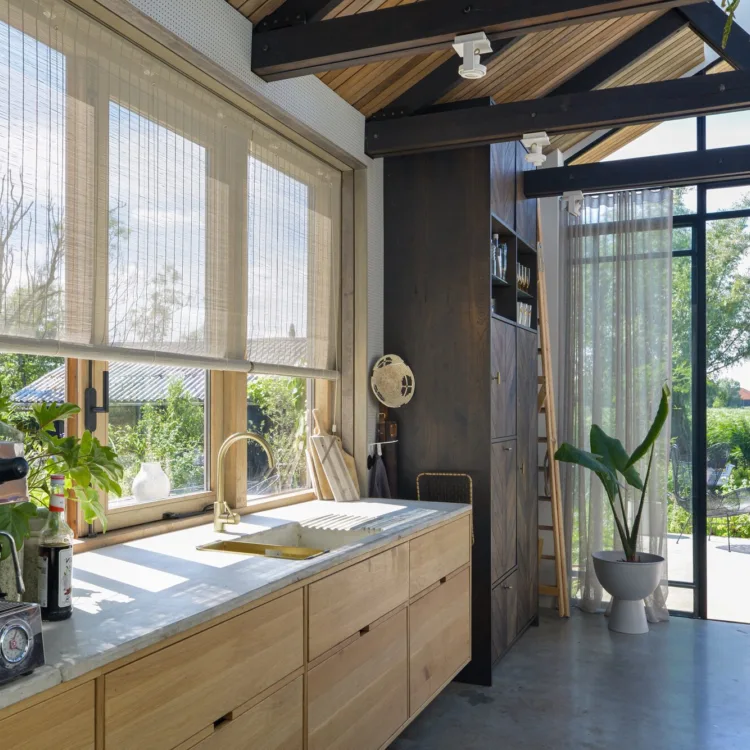 Een geweldige aflevering, al zeg ik het zelf! In Groot-Ammers heeft Marianne moeiteloos de uiteenlopende woonstijlen van Sanne & Gerlinda samengebracht. Sanne houdt van strakke, organische vormen met veel hout en warme kleuren. Gerlinda's smaak gaat alle kanten op, van bloemetjesbehang tot antieke items. Onze luchtige geweven hout vouwgordijnen zijn de perfecte middenweg! Ze bieden de warme uitstraling waar Sanne van houdt, en als je ze combineert met een vloerkleed met blaadjespatroon voor Gerlinda, krijg je een prachtig en uniek interieur.