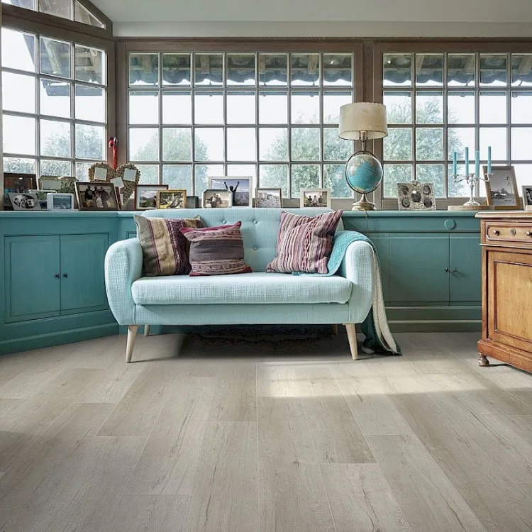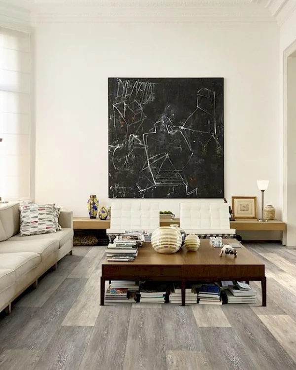 Zoals ik net al zei is een Coretec® een click pvc-vloer. Je hoeft ‘m dus niet te laten plakken op de ondervloer, maar je kan hem dus gewoon ‘los’ laten leggen op je ondervloer. Voordeel van de dikkere onderlaag is dat je kleine oneffenheden niet ziet of voelt. Bij een dunnere pvc- vloer moet je de vloer laten egaliseren, dat hoeft bij een Coretec® vloer dus niet. Handig hè! Voordeel nummer 2 in the pocket!