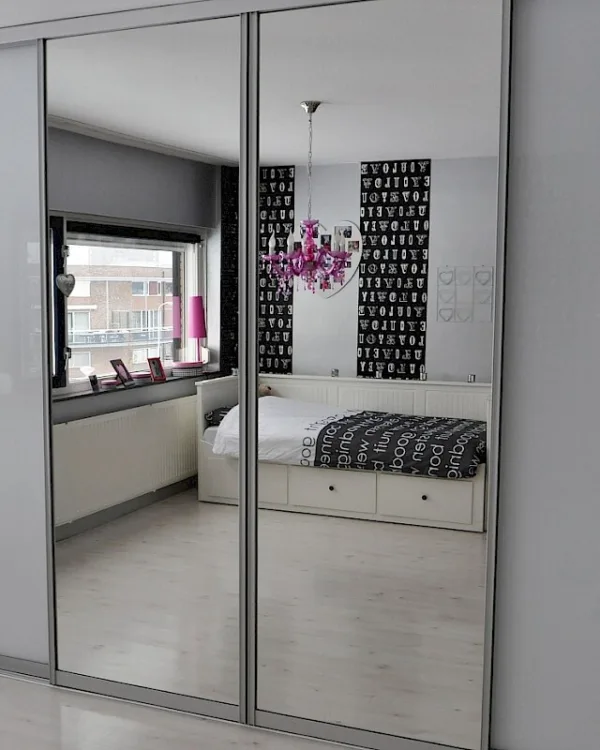 De deuren van de schuifdeurkasten kunnen worden voorzien van spiegelglas. Hierdoor maak je de schuifdeurkast multifunctioneel. Zo bespaar je ook weer ruimte voor een losse spiegel, zodat je hier een kledingrek of kledingpop neer kunt zetten. Een schuifdeurkast met spiegeldeuren wordt op maat gemaakt en kan al vanaf € 900,- bij jou thuis afgeleverd worden. Richt jouw kast volledig naar wens in en ontdek daarnaast het gemak van een spiegel op de schuifdeurkast. Benieuwd naar de kosten voor jouw schuifdeurkast?