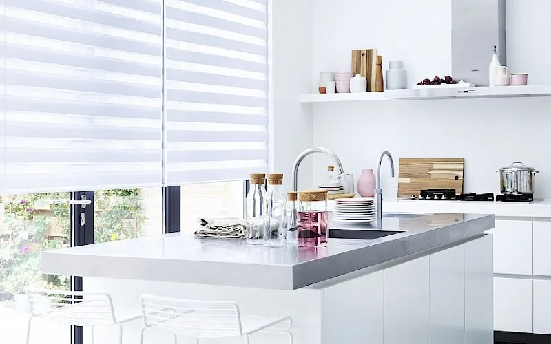 Met de multishades creëer je een strakke uitstraling in de keuken, terwijl het licht op een speelse manier je keuken binnenvalt. Wel moet er rekening mee worden gehouden dat de multishades niet in de buurt worden gehangen van sputterende keukenonderdelen, zoals een blender, kookplaat of iets dergelijks.