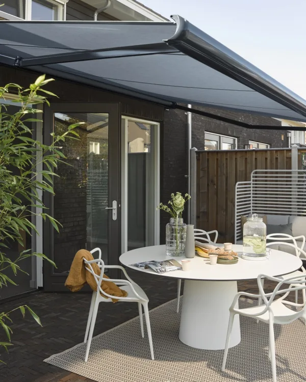Wil jij de zon weren als je binnen zit, maar óók als je buiten zit? Dan zijn de knikarmschermen zeer geschikt. Niet alleen houden ze de warmte, licht en uv-straling buitenshuis, ook op je terras creëer je een fijne schaduwplek.