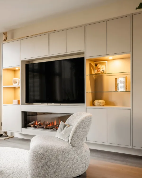 Ben jij op zoek naar een kast die er niet alleen geweldig uitziet, maar ook voldoet aan al jouw opbergbehoeften? Dan zijn onze Cinewall kasten precies wat jij zoekt. Een op maat gemaakte Cinewall kast is niet alleen mooi om naar te kijken, maar het heeft ook allerlei handige snufjes. Je kunt er je tv, geluidssysteem en spullen in opbergen, waardoor je woonkamer er meteen netter uitziet. Geen gedoe met kabels en rommel meer!