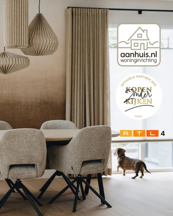 In het RTL-programma Kopen Zonder Kijken geven stellen alles uit handen. Geen bezichtigingen of keuzestress, alleen vertrouwen. Pas als alles klopt, zien zij hun nieuwe woning. Samen met Aanhuis.nl brengen we sfeer en samenhang. Onze vloeren, raamdecoratie en gordijnen laten zien hoe losse keuzes één krachtig geheel vormen. Kijk je mee?