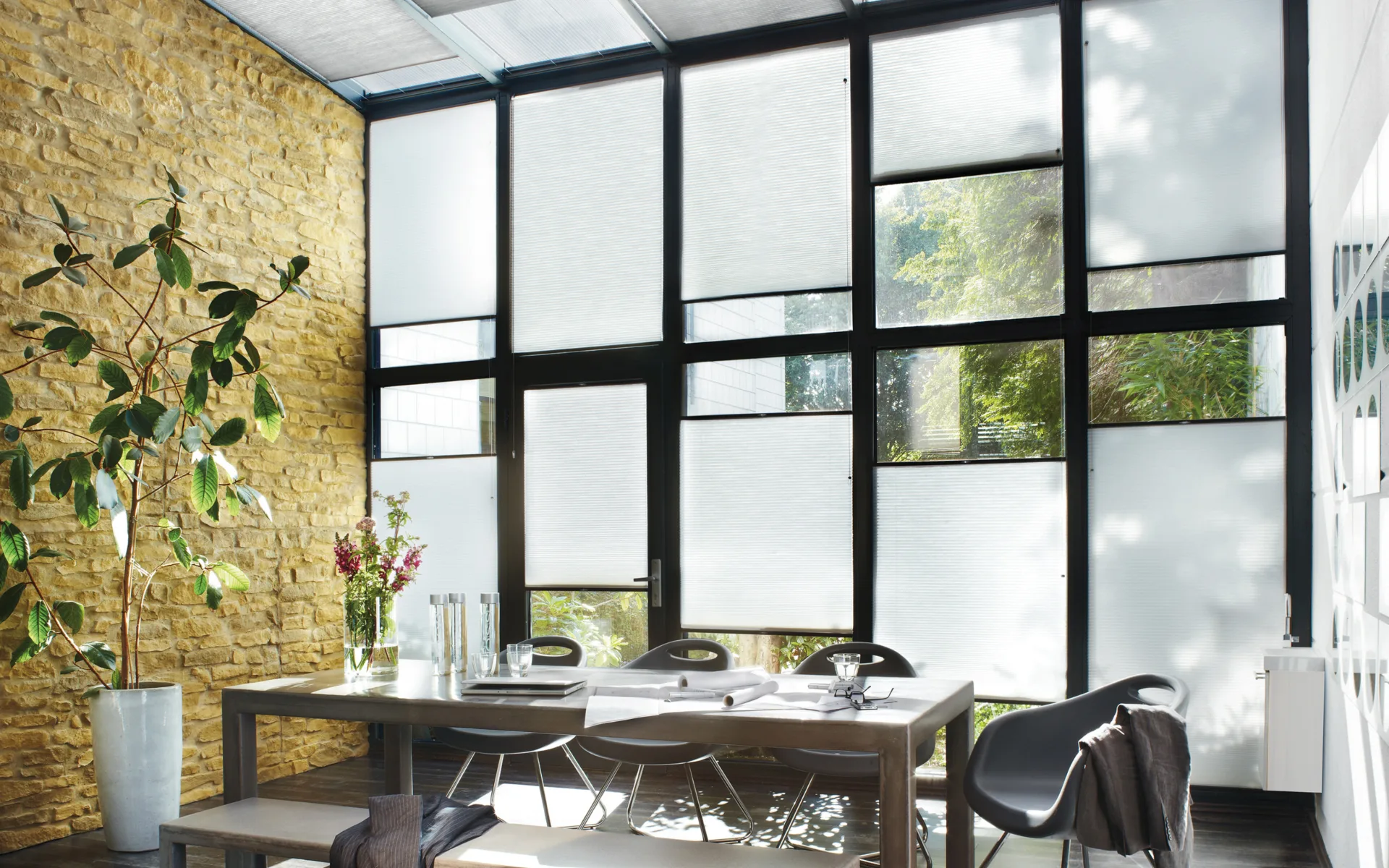 Multisol laat haar plisse- en dupligordijnen uitblinken op elk detailniveau, zoals met de bottom-up en top-down functie. Je kunt namelijk moeiteloos je privacy en lichtinval reguleren door de bovenkant van je raamdecoratie naar beneden te laten zakken of de onderkant omhoog te trekken. Met dupligordijnen kun je zelfs de temperatuur op stijlvolle wijze beheersen, door hun isolerende honingraatstructuur! Creëer jouw perfecte balans met de stijlvolle plisse- en dupligordijnen, helemaal op jouw eigen manier.