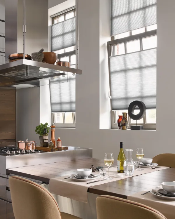 Duette® shades zijn verkrijgbaar in verschillende transparanties. Je hebt de transparante Duette® shades voor veel lichtinval. De semi-transparante Duette® shades geeft je net iets meer privacy. Verduisterende Duette® shades zijn gemaakt van een dichte stof, wat je volledige privacy geeft en als je voor een donkere versie kiest, maakt het je (slaap)kamer ook volledig donker. Ook kun je een verduisterende en lichtdoorlatende stof in een twee-in-één-model combineren. Geniet bijvoorbeeld overdag van sfeervolle lichtinval en 's avonds van optimale verduistering.