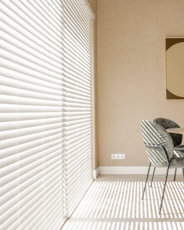 Naast de standaard afmetingen van de lamellen (15, 25, 35, 50 en 70 mm breedte), zijn er nog meerdere opties als het gaat om je horizontale jaloezieën. Je hebt de optie Megaview, daarmee creëer je extra doorzicht, waardoor er meer licht doorheen kan.