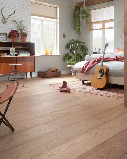 Deze vloer bestaat al eeuwen, de houten vloer. In Nederland is eiken het meest gebruikte hout voor een natuurlijke vloer. De planken worden uit de stammen van eikenbomen gezaagd. Geen lagen, geen kunstmatig materiaal. Een eikenhouten vloer is puur natuur en daar houden veel mensen van. Niet voor niets is de eiken vloer een van de meest populaire vloeren. Recht gelegd of in een hip patroon, licht of donker, smal of breed. Is de eiken vloer iets voor jou?