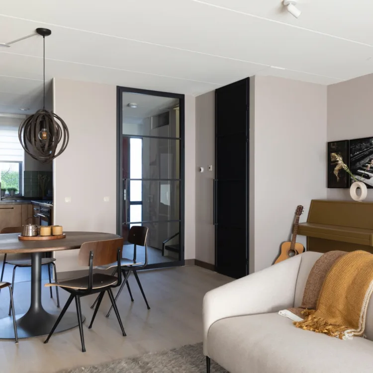 Eigenlijk wil je, nadat je jaren in Amsterdam hebt gewoond, het liefst in een landhuis wonen. Uiteindelijk kom je terecht in een nieuwbouwwoning in Bodegraven. Geen ramp voor Jolien & Otto, het huis is namelijk wel mooi ruim. Het is alleen wel echt nieuwbouw met de lange witte muren. Welke stijl ze precies willen is ook niet echt duidelijk. Uit het moodboard van Jolien komt ‘de Franse droom’ en voor Otto is meer verfijnd industrieel. Hoe Marianne deze smaken weer heeft samengevoegd ontdek je hier.