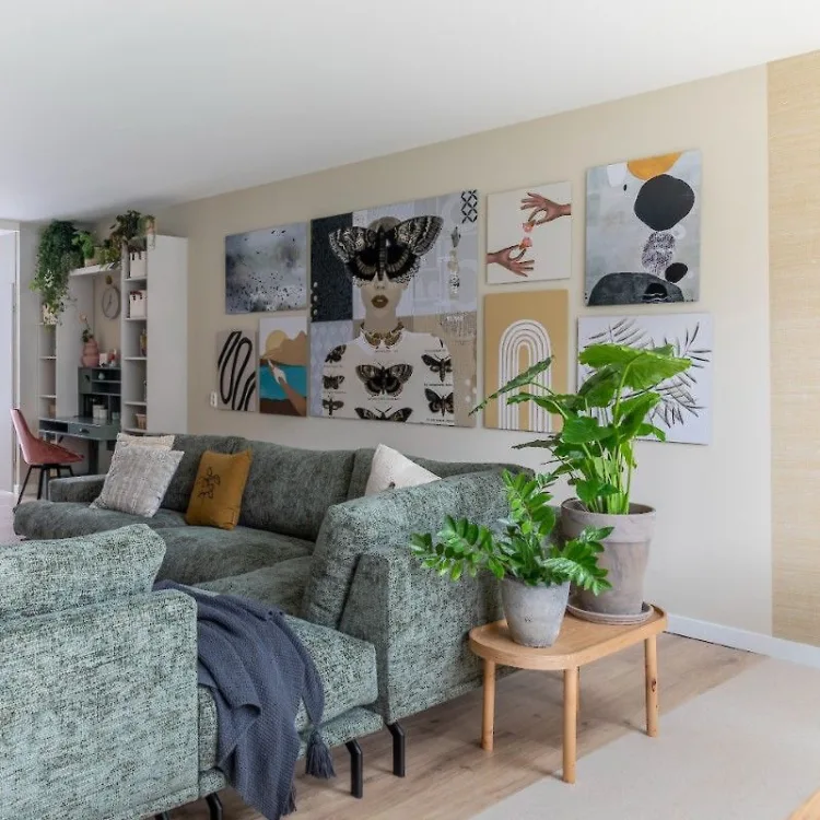 Met de warme kleuren op de muur, het grasweefsel behang van Eijffinger uit de collectie Natural Wallcoverings lll, de stoere meubels en het knutselhoekje voor Sarah is dit weer een heerlijke make-over uit de handen van Eva. Verhuizen hoeft voor Sarah & Daniël echt niet meer, ze blijven lekker op dit mooie plekje.