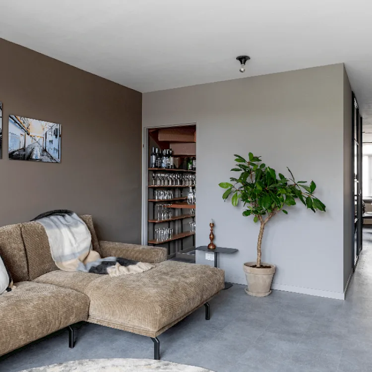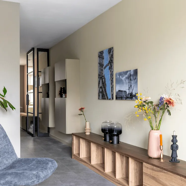 Bekijk onze kasten op maatTof hė zo'n strakke pvc vloer? Helemaal gaaf doordat de hele benedenverdieping dezelfde vloer heeft. Dat straalt rust en eenheid uit. En die kast op maat, wat goed gedaan van Fietje! Daar knapt de ruimte tussen de woonkamer en de keuken volledig van op.