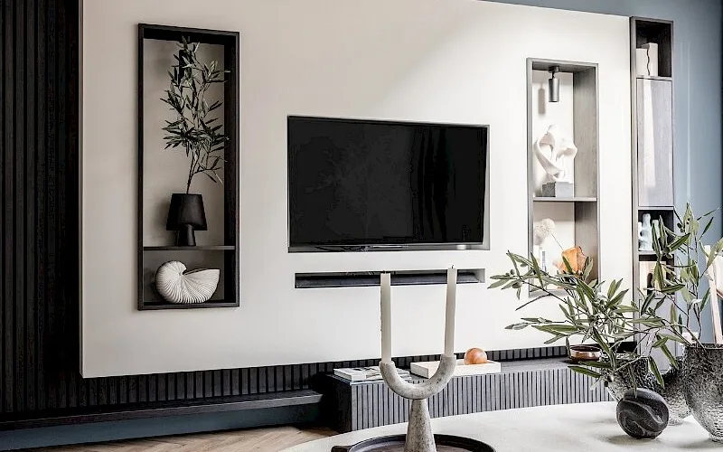 Om je spullen goed op te bergen, extra zitruimte te creëren, maar ook om sfeer te brengen in je ruimte, maken wij kasten op maat. Of het gaat om een wasmachinekast in je berging, wandmeubels in de woonkamer of een inloopkast voor je kleding; bij Aanhuis.nl draaien we onze hand er niet voor om. Kasten met draai- of schuifdeuren, zelfs je kastinterieur en accessoires kan je uitzoeken. In IJmuiden zie je een kast waarin de televisie is verwerkt.