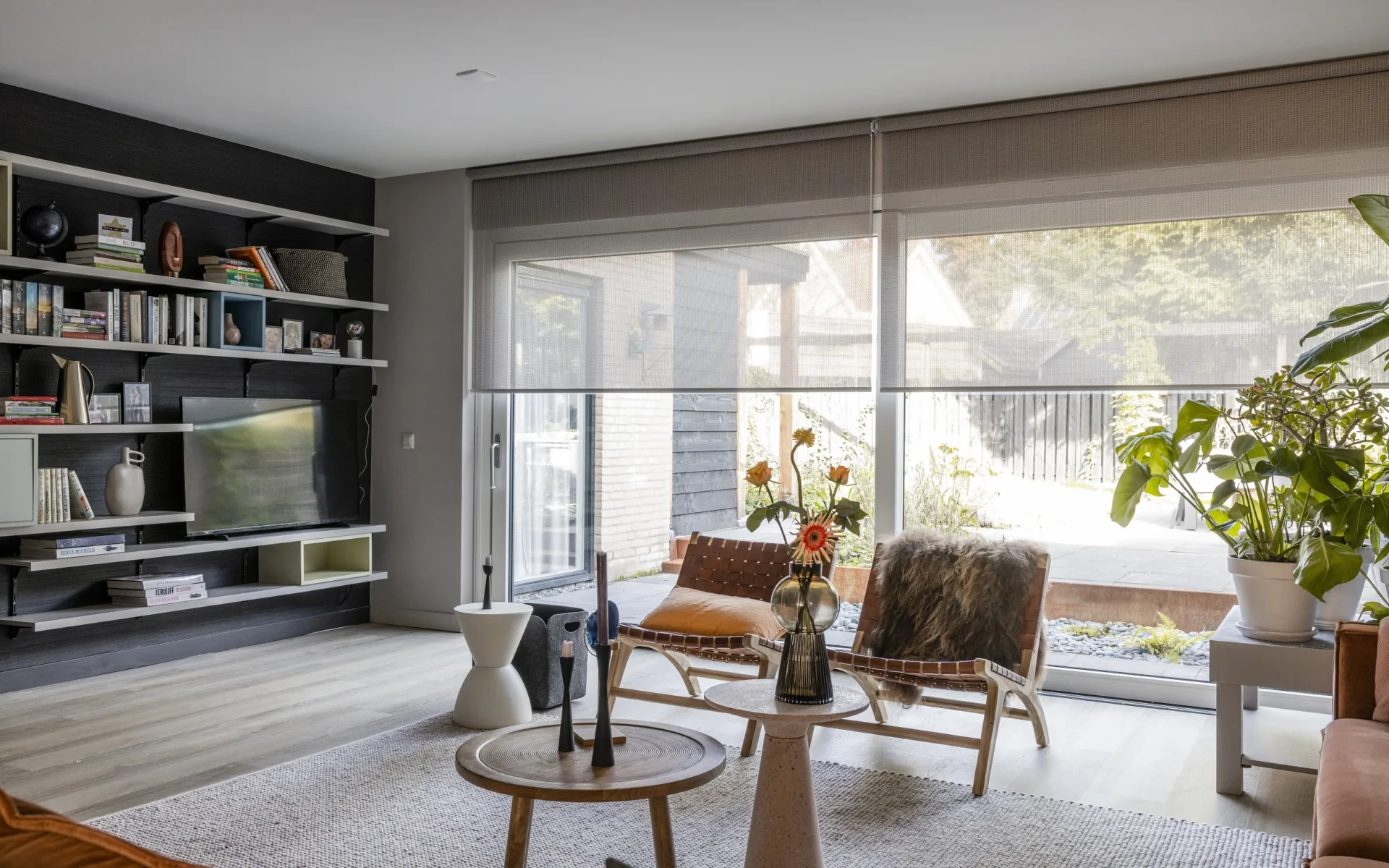 Om nog meer warmte - letterlijk én figuurlijk - toe te voegen, kiest Fietje daarnaast ook voor nieuwe raamdecoratie. In de keuken gaat ze voor Duette® shades in de kleur A 52528, die niet alleen prachtig staan door de lichte kleur, maar ook nog eens isolerend werken. Duette® shades bestaan namelijk uit een soort honingraat structuur, waardoor ze de koude lucht tegenhouden. Bij de schuifpui zijn nieuwe rolgordijnen van bece gemonteerd, in de kleur D 53067. Daarbij koos Fietje voor een lichte kleur voor Marloes en een warme, natuurlijke look voor Bram door de open geweven stof. Om het plaatje compleet te maken is alle nieuwe raamdecoratie elektrisch bedienbaar met Motion. Met Motion van bece kunnen ze meerdere scenario's instellen en met één druk op de knop hun raamdecoratie open en dicht doen. Zo hoeven ze niet elke keer op te staan als de zon ineens feller schijnt!