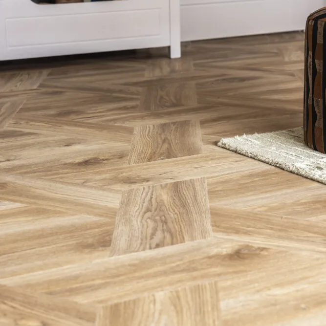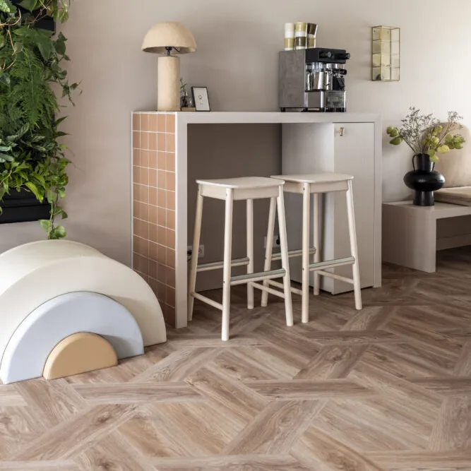 In Houten kiezen we voor een een Moduleo pvc-vloer Wicker 287. Dit is een houtlook pvc-vloer, met een luxe uitstraling. Het Wicker patroon, ook wel hexagon genoemd, zit vol karakter en zorgt ervoor dat je een ware eyecatcher van een vloer hebt. Het bestaat uit een centrale zeshoek die wordt omgeven door parallellogrammen die in elkaar verweven worden. Ingewikkeld? Niet als je het ziet! Om te leggen; ja, best wel. Laat dit daarom altijd doen door onze vakmensen. Zij doen veel meer dan dat; ze denken met je mee over de ondervloer, inmeten, leggen en ook over de afwerking door bijvoorbeeld plinten of advies over vloerverwarming.