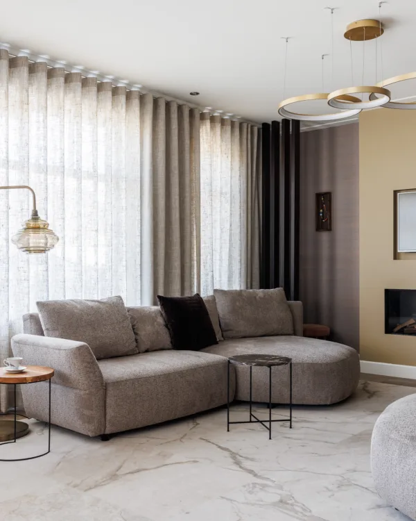 De inbetweens hebben zelfs een speciaal effect. Ze zijn namelijk gehangen aan een elektrische gordijnrails (Forest DS XL), waardoor ze elektrisch te bedienen zijn en je ook scènes in kan stellen. Zo kun je bijvoorbeeld instellen dat de gordijnen automatisch open gaan bij zonsopkomst en 's avonds zelf sluiten. Perfect voor een filmavondje op de bank of zelfs als beveiliging als je op vakantie bent! Dat is echter nog niet alles, want het stoere aan deze gordijnrails is dat er ledverlichting in verwerkt is. Dit zorgt voor het Hotel Chic-gevoel wat Roy juist zo graag wilde!