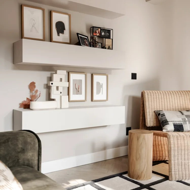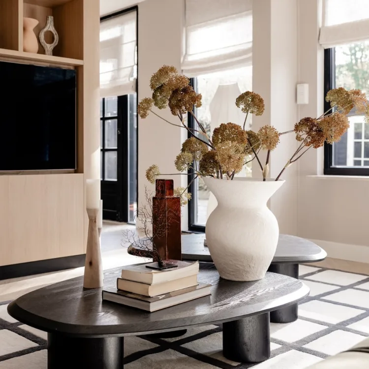 Japandi woonstijl met lichte vouwgordijnen